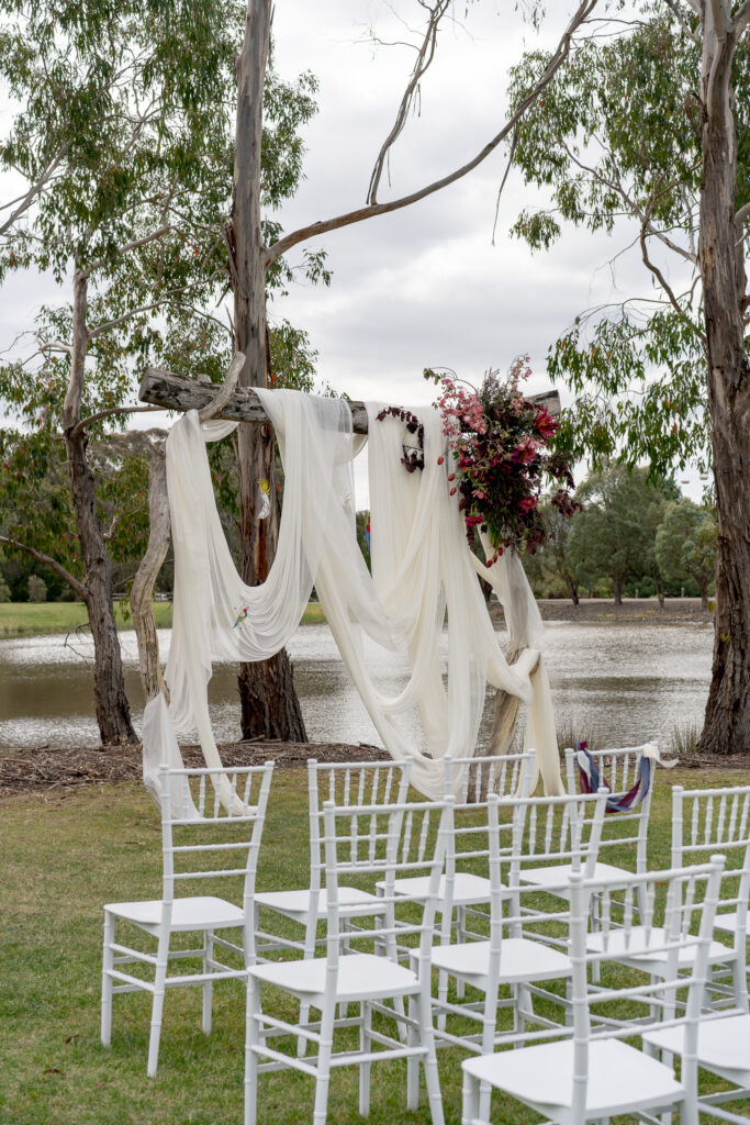 At The George Ballroom, with its ornate high ceilings, heritage details, and sunlit parquet floors, floral installations framing the ceremony bring a sense of modern romance and refined drama to the space. By contrast, Barunah Plains—set amidst rolling countryside—lends itself beautifully to relaxed, garden-inspired arrangements that echo the estate’s natural surrounds, creating an atmosphere that’s both welcoming and quietly elegant.